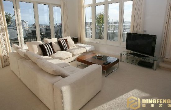 喜歡大理石光滑的質(zhì)感,我一直希望客廳的地板能鋪上大理石。但因?yàn)榇罄硎缓┕ぃ獠牧暇秃苜F,預(yù)算不允許。便采用6060的拋光石英磚代替,當(dāng)然就省下不少錢。