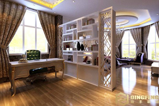 書房的巧妙隔斷能很好地劃分清書房的不同空間只能,包括工作區(qū)和休閑區(qū)等,書房隔斷的選擇相比于傳統(tǒng)的材料隔斷,經(jīng)常也會偏向于一種裝飾性的隔斷,利用層次隔斷創(chuàng)造良好的空間效果。