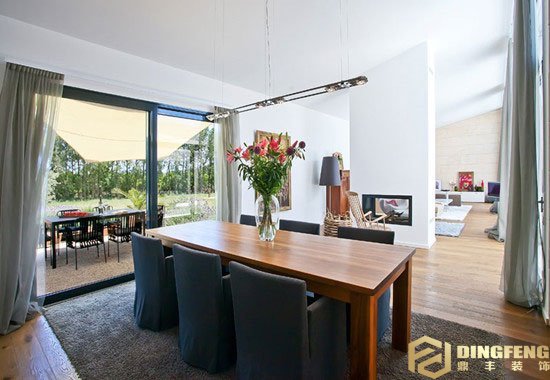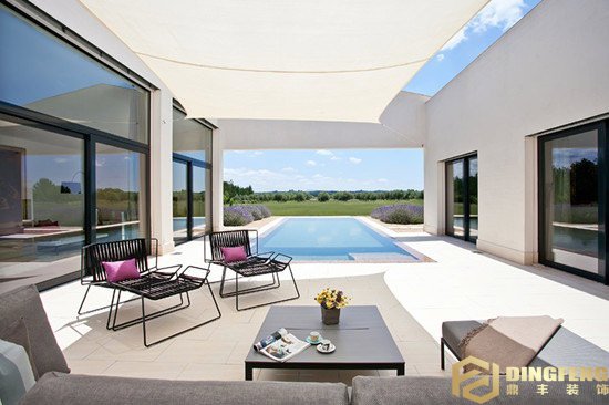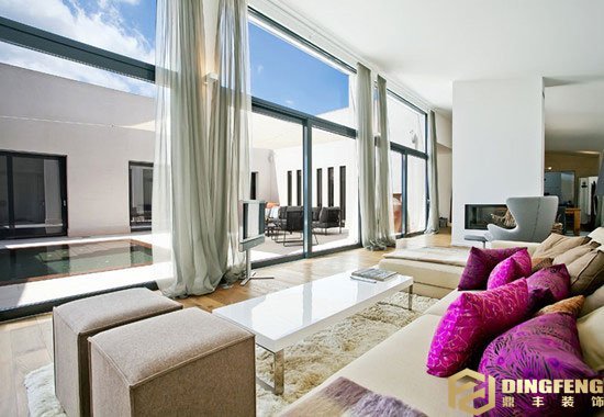 別墅在裝修與設計時,前院、后院、中庭的景觀也是必要的,為了隨時隨地看到好風景,在別墅里一定會設計觀景窗,因此大型的落地窗也是必不可少的。活動的玻璃落地窗不僅可以看風景,還可以將室內室外連成一體,借景的方式使室內面積感覺更大更通透。