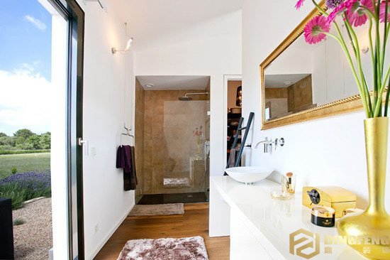 鏡子有增加深度的視覺效果,尤其在浴室這種本身比較小的空間里,墻面鏡的巧妙運用甚至能使之看起來比實際面積擴大一倍以上。狹長型的浴室可以在窗戶對面設置鏡子,起到延長視線的作用,人行走在其中就不會有壓抑和擁擠的感覺了。